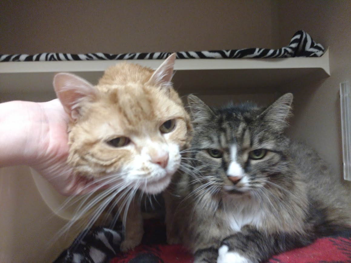 My name is Peanut and I am a 12 year old female. I am looking for a home with Bandit, my bestie. Although we're not technically related, we're besties and have been together our whole lives. My feline-ality is "Secret Admirer". I don't leap in paws first, if you know what I mean. But give me a little time, and then I'll shower you with purrs, head-butts, and plenty of lap time. Bandit is a little more outgoing, you could describe him as a "Personal Assistant". Reading the paper? He'll hold the pages down for you. Watching TV? He'll just plop in your lap so you can pet him.You'll wonder how you ever managed without us both!