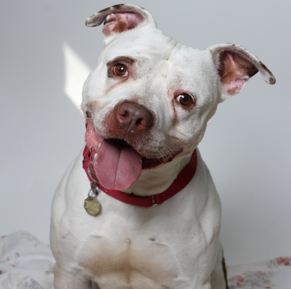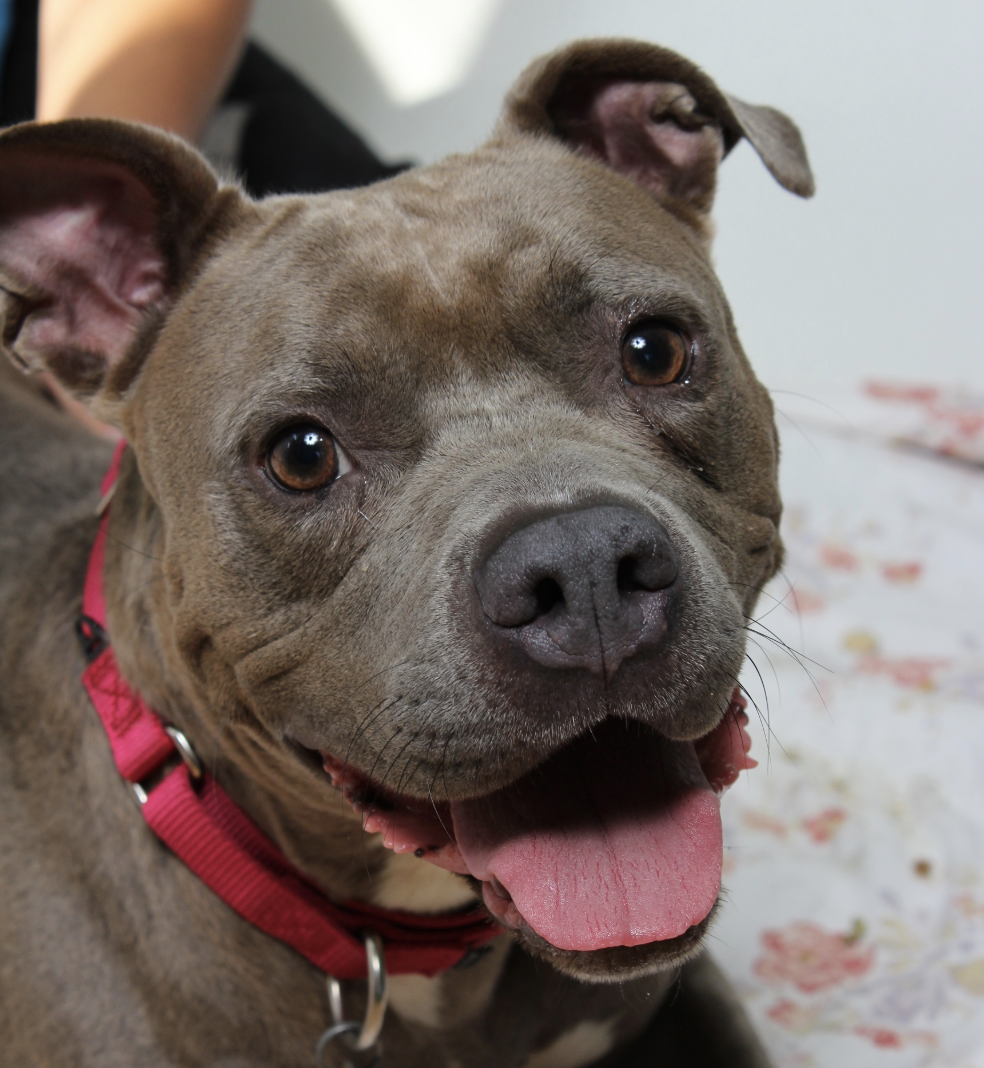 Hi there, my name is Lucky! I am a 10 year old Staffordshire Terrier mix. Do not let my age fool you - I am still a spry, playful pup who loves toys. I would do best in a home with older kids and as the only pet. Come meet me today!