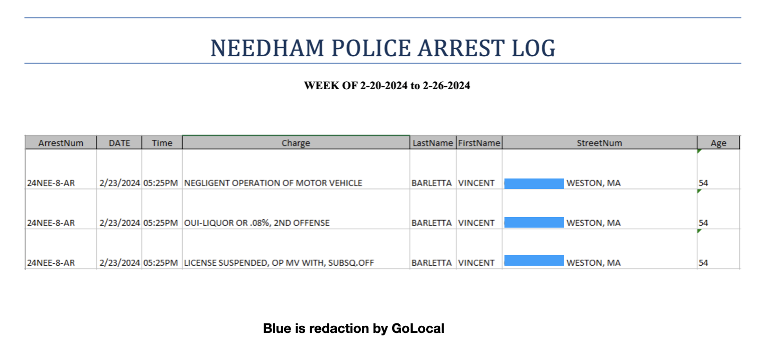 According to reports, on February 23, 2024 at approximately 4:00 PM, Needham Police were notified by a crossing guard that a man was passed out in his vehicle.