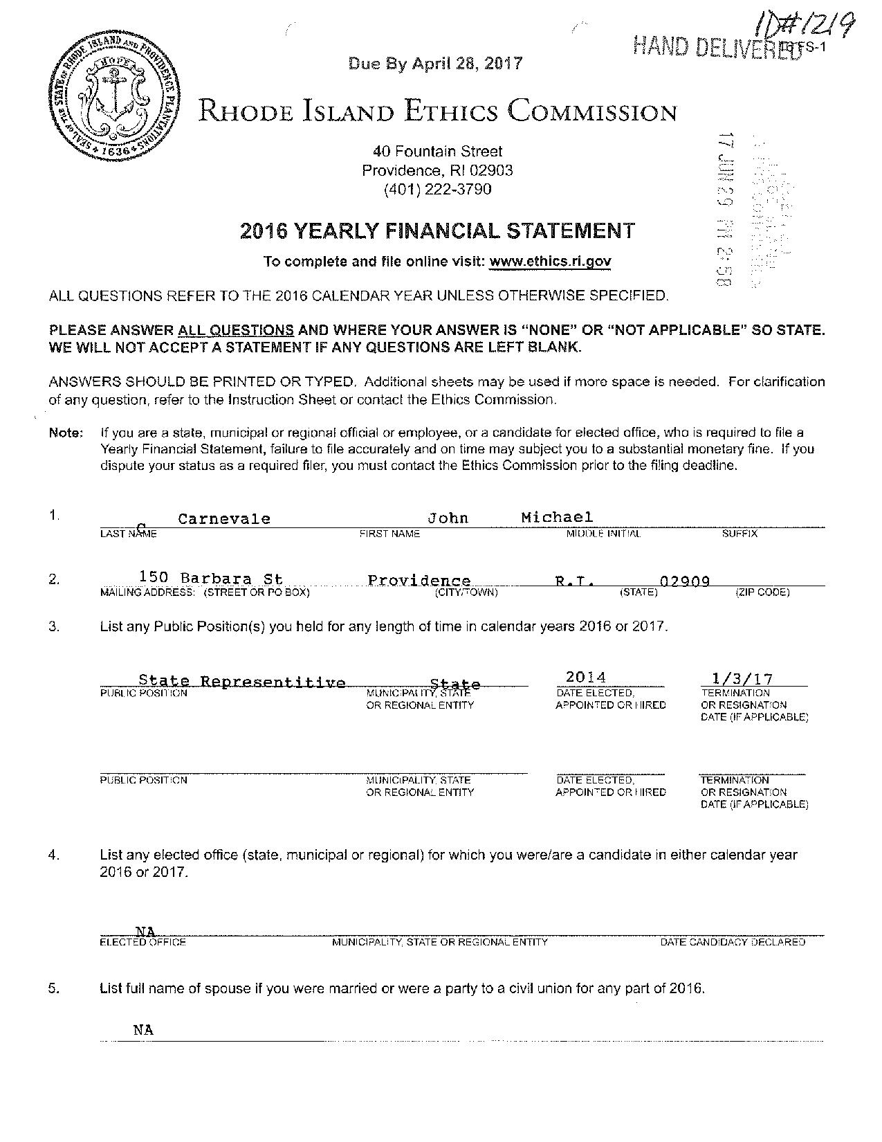 Despite his disqualification in 2016, Carnevale has continued to submit campaign finance reports through the first quarter of 2018, listing 150 Barbara Street as his address.
