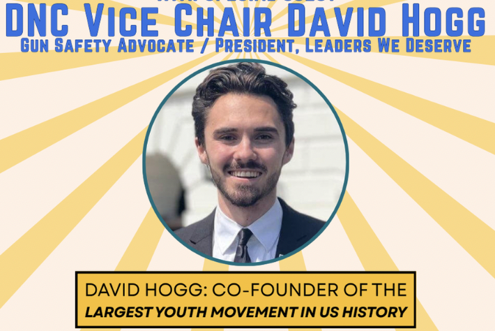 Stop by Fish Co. starting at 6 PM for food, drinks, merch, music, new Dem friends, and an opportunity to meet David Hogg. This is an event you’re not going to want to miss!