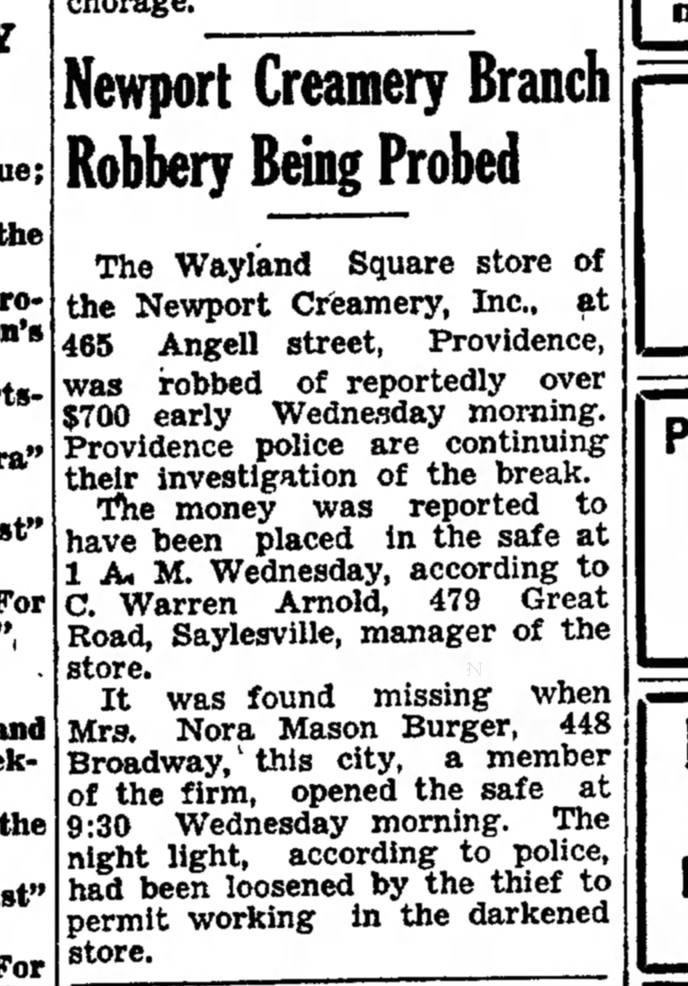 Not long after the Wayland Square store opened, it was robbed.