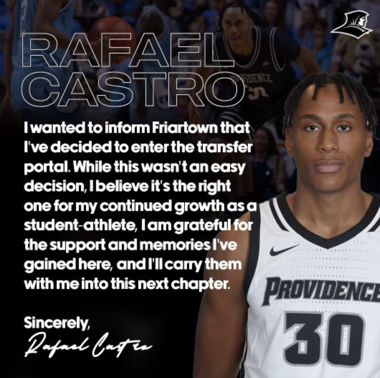 Third Friar Enters the Transfer Portal - Castro Departs
